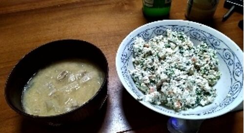 舌の裏に出来た口内炎が治らないため、柔らかい食事を用意してもらってます。 ありがたやー。今日は白和えとみそ汁。こまかーく切ってもらった上に柔らかくしてもらって。 優しい味で美味しかったです♥